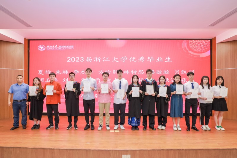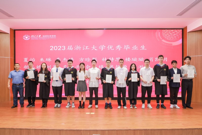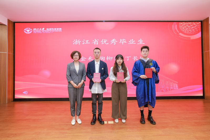 毕业典礼在《地学赋》的朗诵声中开始。学院领导王苑、杜震洪、程晓敢和饶灿等分别为优秀毕业生颁发荣誉证书,鼓励和表彰他们在校期间的优异表现。
