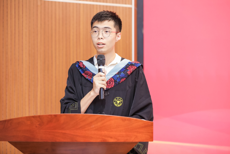 本科毕业生代表、地质学(求是科学班)郑栋昊分享了本科四年中的体会与感悟。他从“感谢”与“热爱”两个方面,表达了对父母、老师、同学的感恩之情以及对全体毕业生们的鼓励。