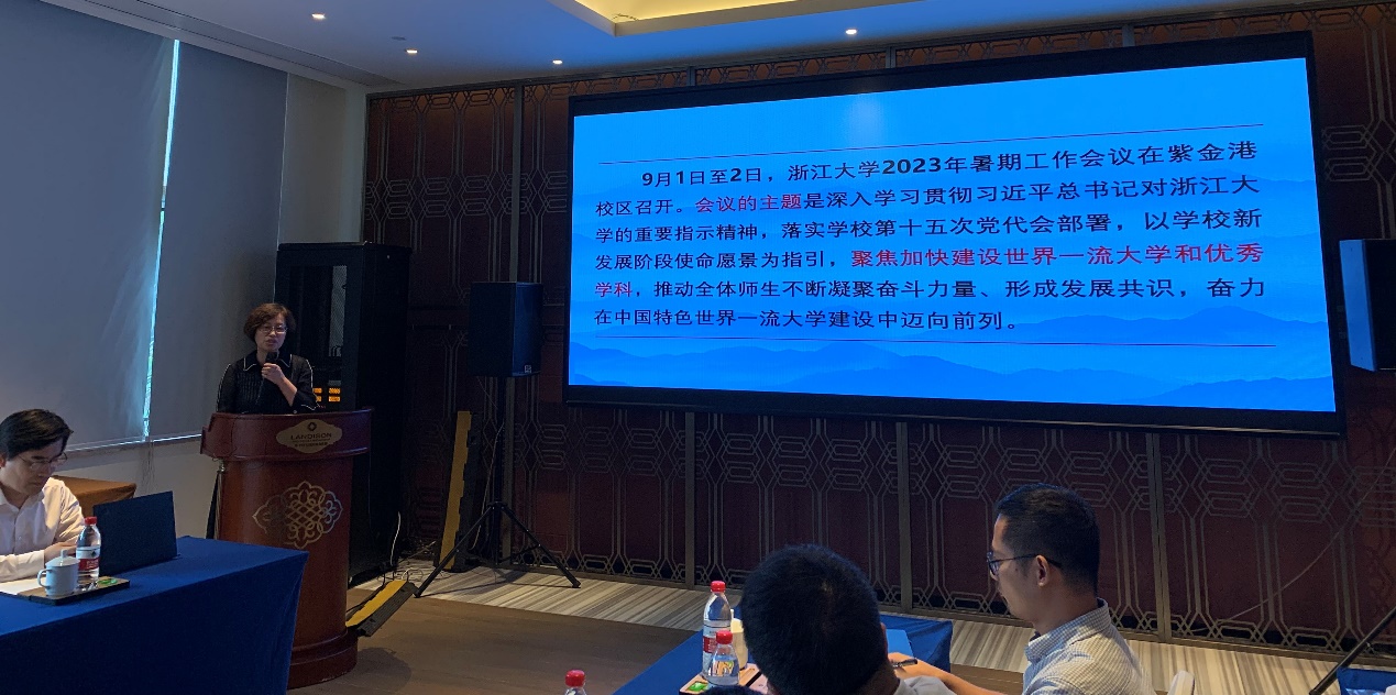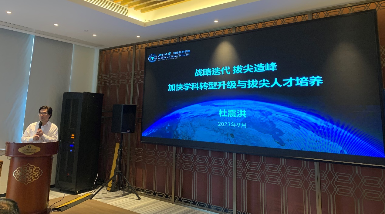 常务副院长杜震洪以“战略迭代 拔尖造峰 加快学科转型升级与拔尖人才培养”为题作学院学科发展与人才培养工作报告,总结上一阶段学院在人才引育、科研工作、立德树人等方面取得的进展,分析学院当前发展面临的问题与挑战,并强调,学院上下要以学校新发展阶段使命愿景为指引,紧紧围绕“大数据与地球系统”战略布局加快推进学科转型战略迭代和拔尖造峰、构建面向未来的拔尖人才培养体系、建设面向大科学时代的开放学术生态,奋力在中国特色世界一流大学和优秀学科建设中迈向前列。