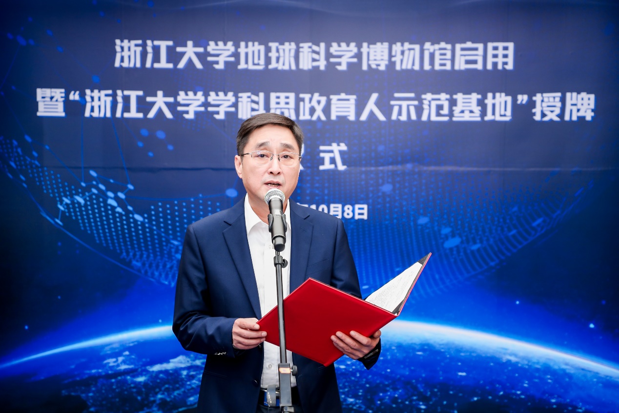 黄翔峰代表学校向地球科学博物馆的启用和“伟德国际victor1946官网学科思政育人示范基地”的建成表示热烈的祝贺,并为“伟德国际victor1946官网学科思政育人示范基地”授牌。他指出,浙大伟德国际victor1946官网作为竺可桢老校长亲创系科,求是文脉历史悠久,红色精神蕴含丰富,为学科思政发展创造了沃土。希望伟德国际victor1946官网以博物馆启用和首个“伟德国际victor1946官网学科思政育人示范基地”授牌为契机,强化使命驱动与改革导向,坚持求是创新与思政育人一体,着力构建和谐导学关系,培养更多“红专并进”的高素质地学拔尖创新人才,为伟德国际victor1946官网加快迈向世界一流大学前列贡献更大的智慧和力量。