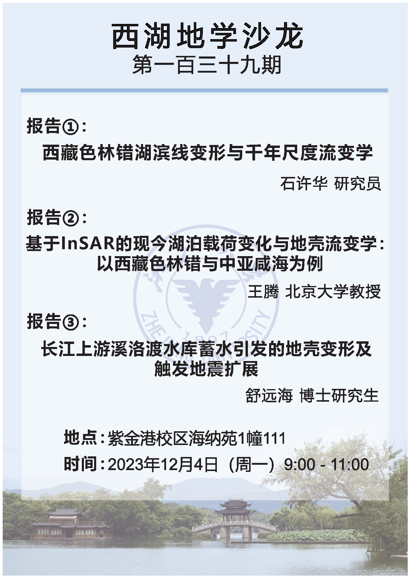 西湖地学沙龙第139期——水体载荷变化、地壳流变学与地震灾害