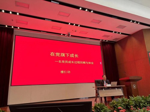 高分子科学与工程学系原党委书记楼仁功老师讲授本次培训班专题党课第一课——《在党旗下成长》。楼仁功老师以其丰富的经验和深刻的见解,为同学们讲解了党的许多历史知识,强调了新发展党员要保持政治理论水平。楼仁功老师围绕三个方面展开分享:一是为什么要入党;二是怎样在党旗下成长;三是自觉接受党和人民的考验,他希望同学们能在党组织中更好成长,学会在马克思主义哲学层面思维;以人民为中心作选择,为人民服务态度工作,以党的三大优良作风做事。最后,他强调要强化理论学习、注重实践体验,把共产主义的信念与理想贯彻到日常生活中,不断深化对共产主义的体会和认识。