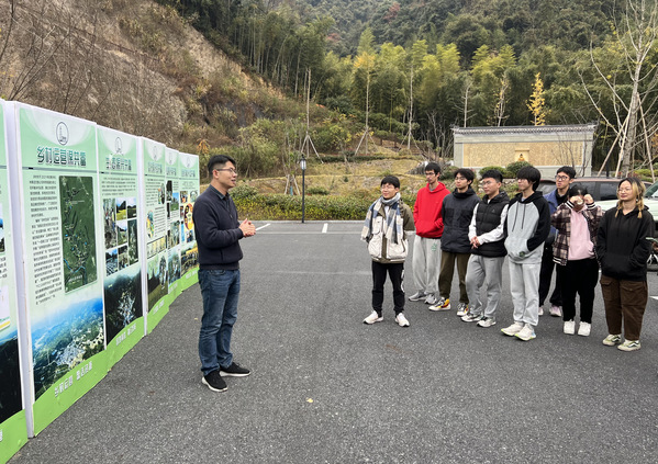 在临安区洪村,青马学员聆听了谷增辉校友(现任洪村运营规划师)分享通过乡村运营带动乡村振兴的发展经验。洪村位于临安以北、径山以南、城西科创大走廊以西,在“千万工程”的政策推动和当地政府大力支持下,许多青年回乡创业,发掘了当地得天独厚的自然条件和发展潜力,为洪村带来了一场充满浪漫主义色彩的变革,实现了从“四无村”到百万强村的完美蜕变。