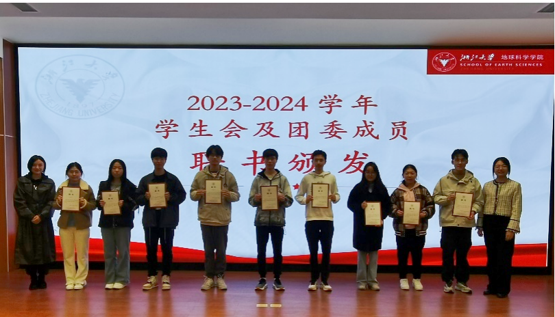 随后,蒋艳冬老师和叶盛珺老师为学生会及团委学生组织成员们颁发聘书,表达了对成员们上一阶段努力和付出的认可,以及对他们未来在学生工作中担当和责任的期待。