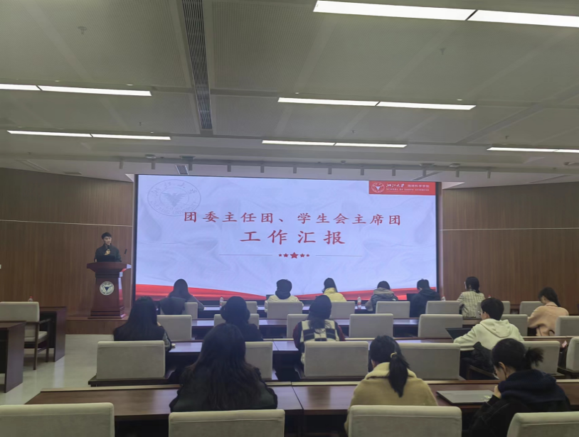 蒋艳冬老师学习传达了习近平总书记对伟德国际victor1946官网重要指示精神、习近平总书记对宣传思想文化工作重要指示和全国宣传思想文化工作会议精神,同时提出了两点期许:希望主席团、主任团成员发挥带头作用,更好地统筹规划、总结成果;希望所有学生会及团委学生组织成员保持“时代感”,保持思想的先进性,在服务中锻炼和成长,在实践中彰显地科学子的使命与担当。