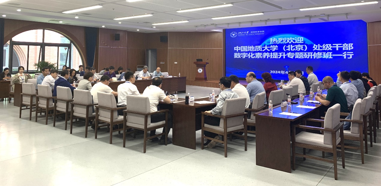 王苑主持会议,对中国地质大学(北京)处级干部数字化素养提升专题研修班一行的到来表示热烈的欢迎。