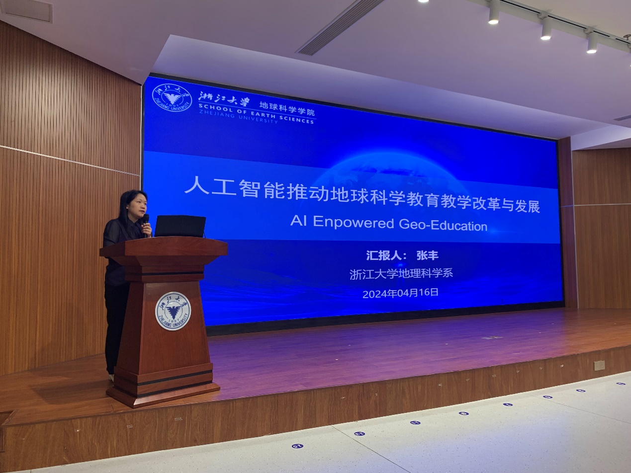 会上,我院地理信息科学系副系主任张丰和地理与空间信息研究所副所长苏程分别围绕AI for Education 和AI for GeoScience作主题报告,分享了学院在人工智能赋能人才培养方面的举措和人工智能融入教育教学的培养成效,以及学院“大数据与地球系统交叉研究中心”的运行机制以及中心在推进交叉研究、人才培养等方面的重点举措。