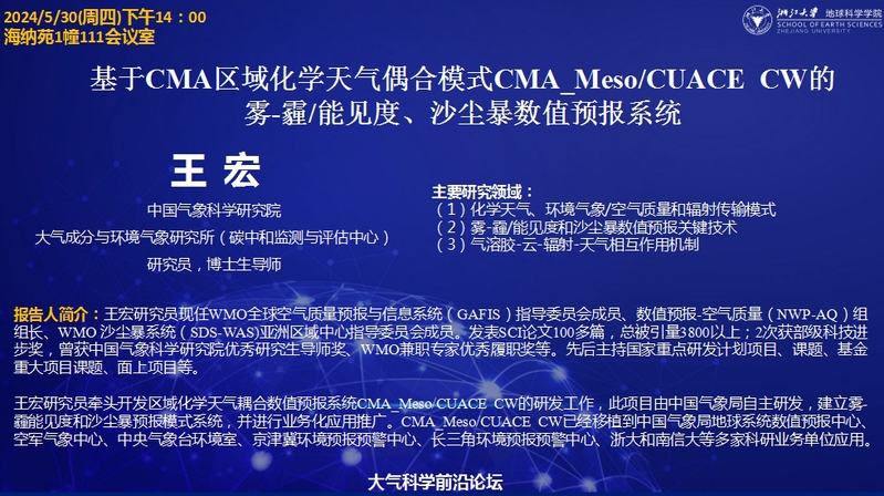 大气科学前沿论坛——王宏 中国气象科学研究院大气成分与环境气象研究所(碳中和监测与评估中心)研究员