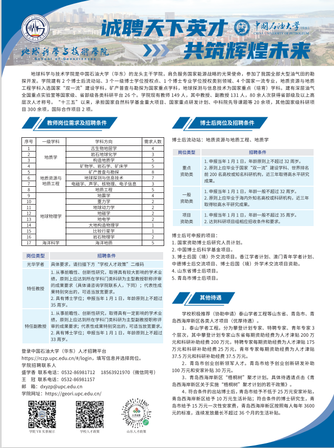 2024613日下午16:00,中国石油大学(华东)地球科学与技术学院进校宣讲,活动地点海纳苑1幢436教室,欢迎博士生、博士后参加!