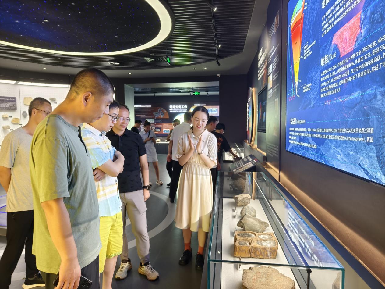 从“校友之家”缓步向前,学生讲解员将地球科学博物馆的由来、概况和设计理念娓娓道来,不时插入些地学工作者求是创新、爱国奉献的精彩故事,引人入胜。在闪亮星空的照耀下,校友们跟随讲解员的脚步,纵横千万里,穿越数亿年,共同探索地球奥秘,体会地学之爱。