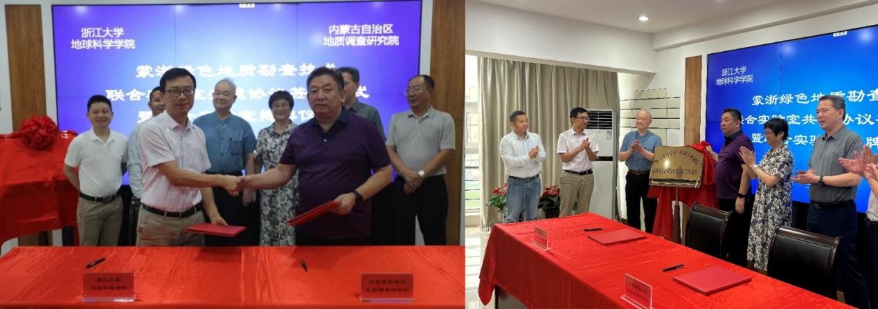 2024年8月2日上午,“伟德国际victor1946官网-内蒙古自治区地质调查研究院蒙浙绿色地质勘查技术联合实验室”(以下简称“联合实验室”)签约暨揭牌仪式在呼和浩特内蒙古地质调查研究院(以下简称“内蒙地研院”)举行。我院杨文采院士、张宝华副院长、饶灿教授及全体实验室成员出席。内蒙地研院敖嫩院长主持签约暨揭牌仪式。