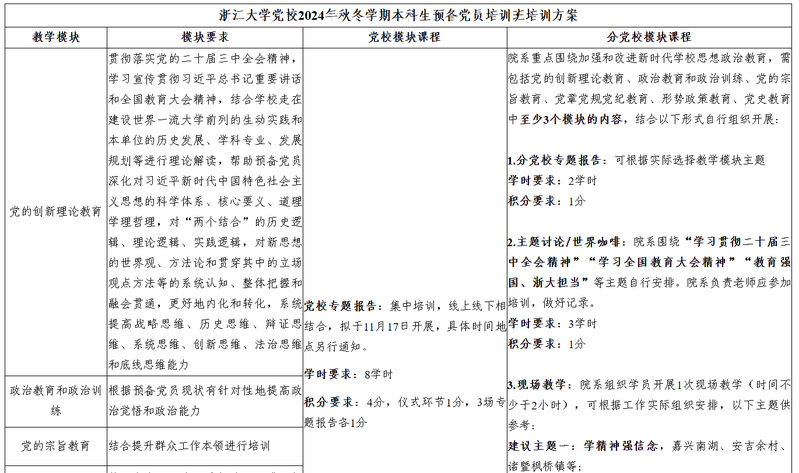1.培训班教学活动采用校院两级结合的方式进行,学校党校组织专题报告、专题教学、结业考试等环节,院级分党校负责组织专题报告、主题讨论/世界咖啡、现场教学、主题党日/志愿服务活动、心得体会等环节。除以上教学内容,院级分党校还可自行设计其他教学模块和要求。