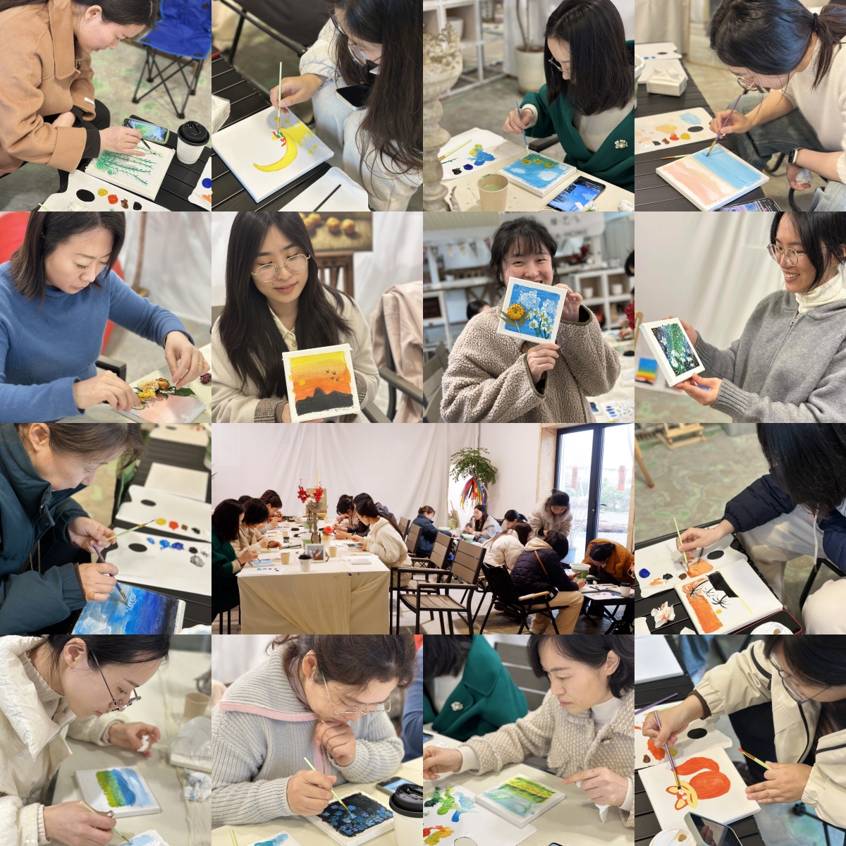 大家来到室内的手工工艺品体验区,体验妙趣横生的植物绘画。在专业老师的指导下,女教职工们纷纷拿起画笔,将对春日美景的遐想和对幸福生活的热爱倾注于画布之上,创作出一幅幅生动且充满艺术气息的画作。